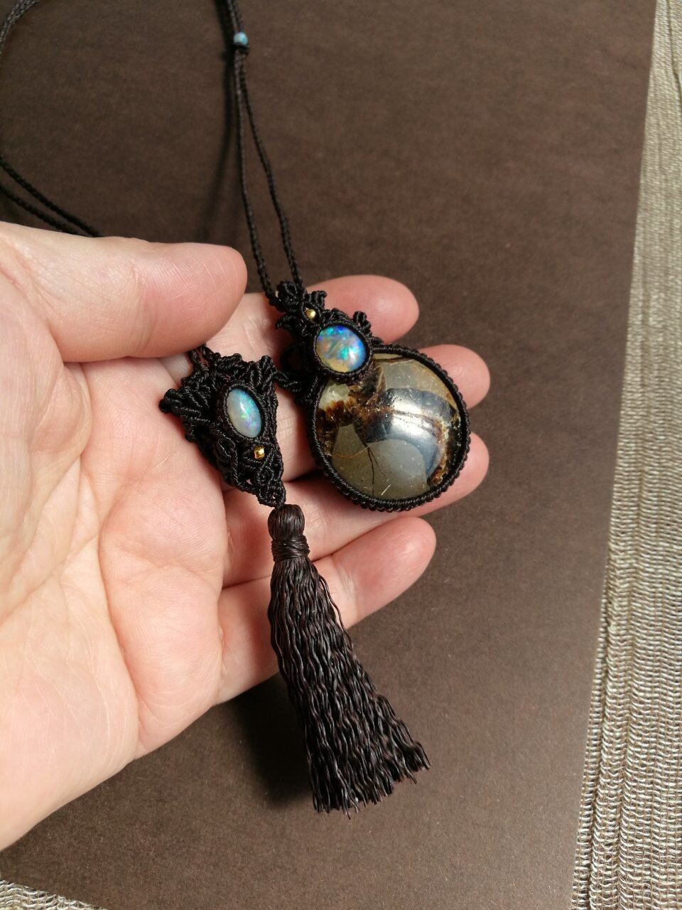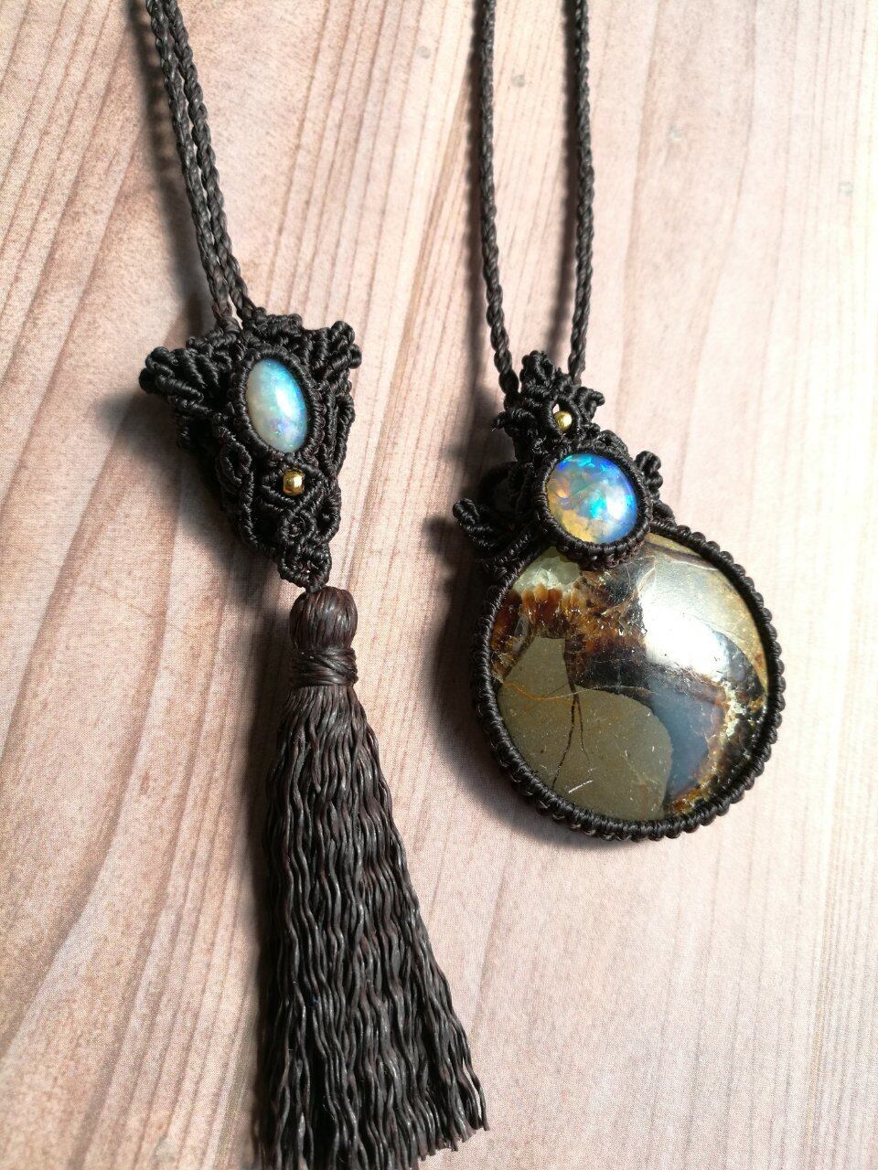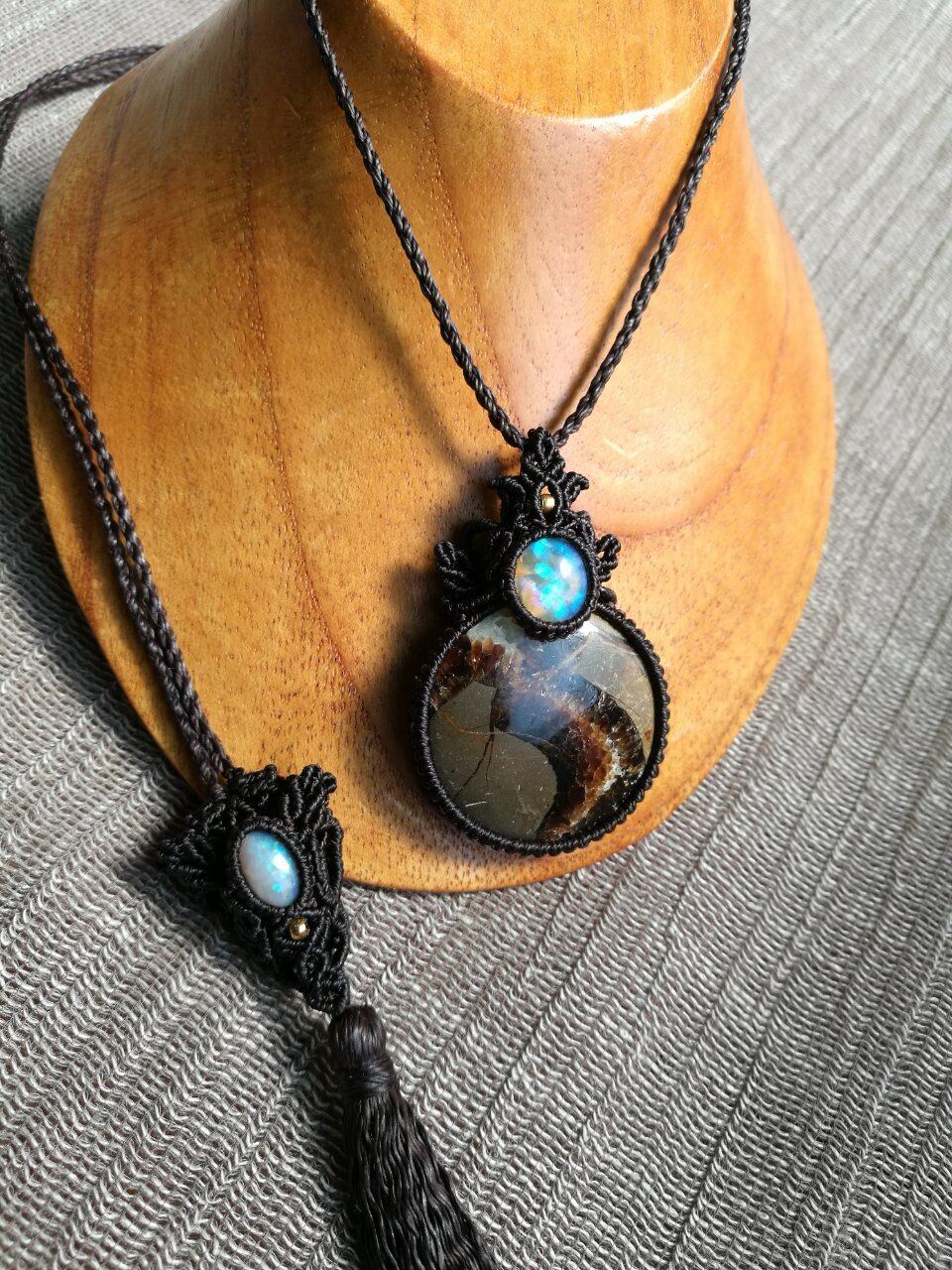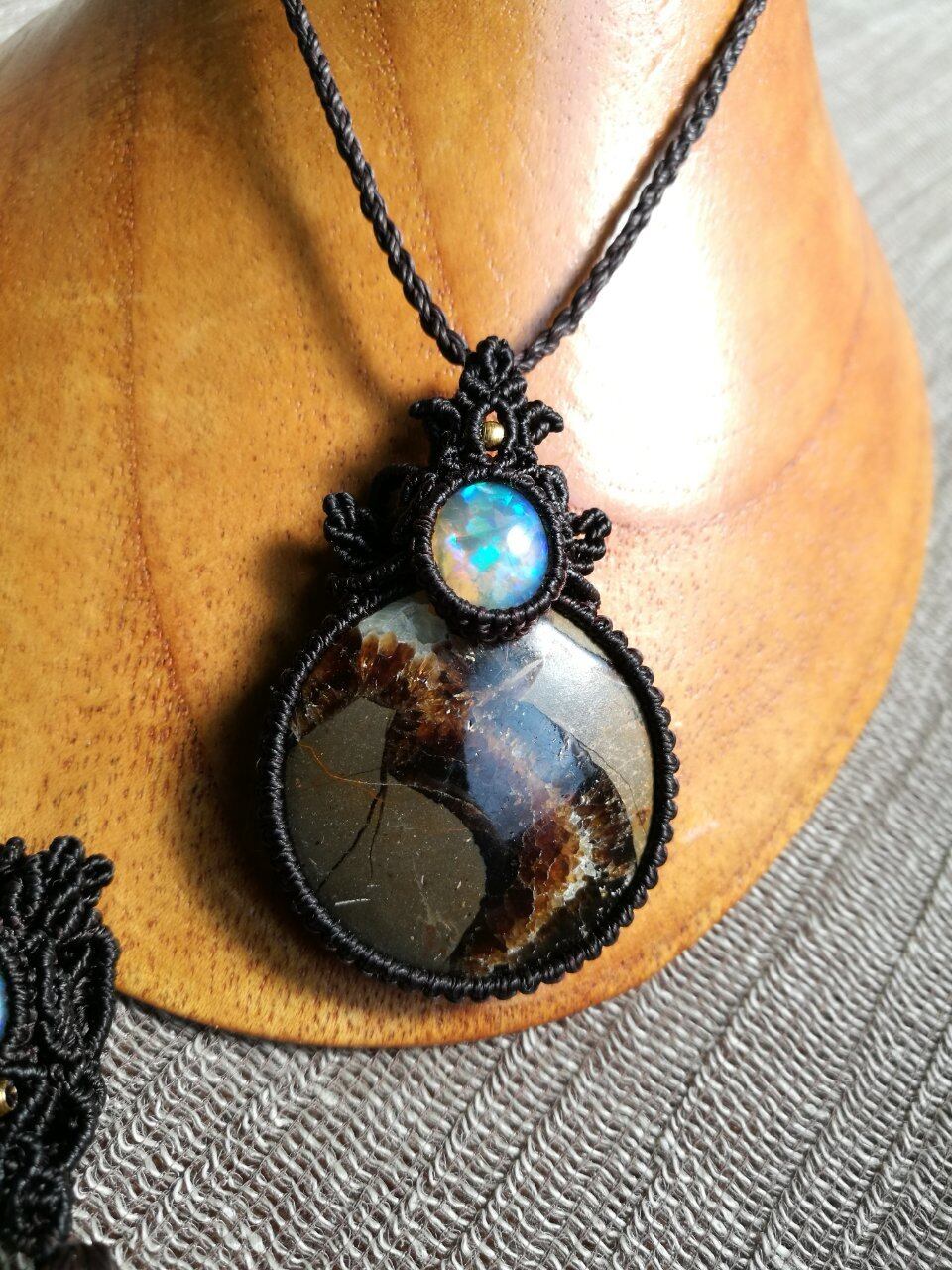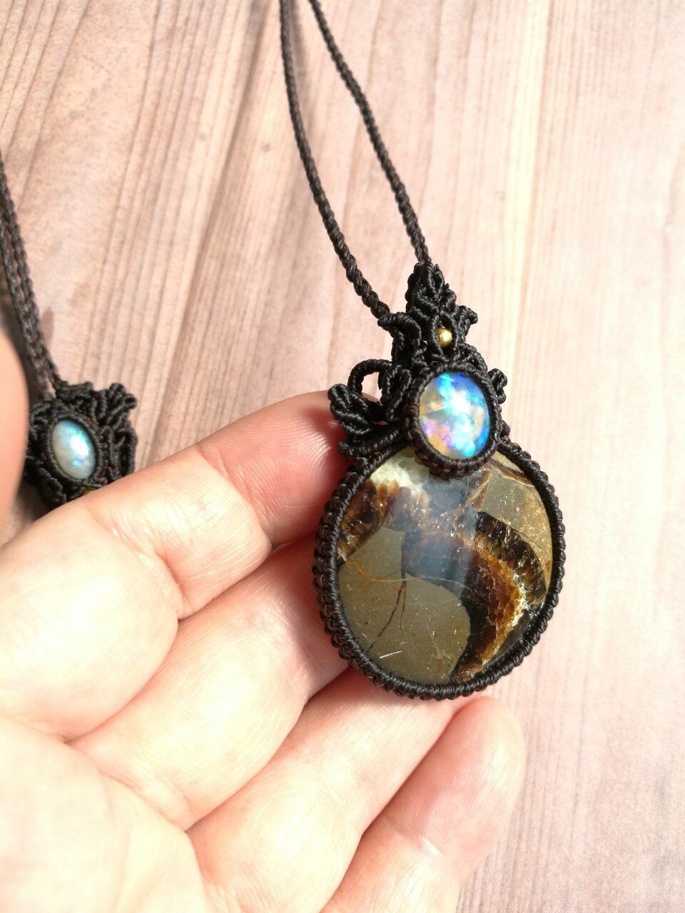 人気の真ん丸お月様の様な形のセプタリアンと、遊色が抜群に美しいオパールで、立体感のあるペンダントをお仕立ていたしました♡