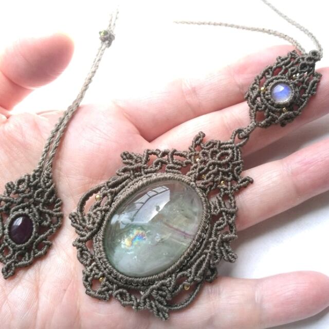 エンジェルフェザーフローライト&レインボームーンストーン ペンダント