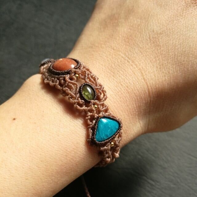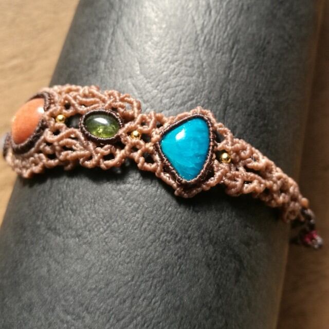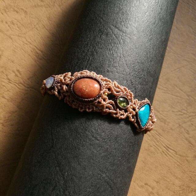 豪華4石をあしらい、ブレスレットを編み上げました♡