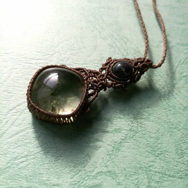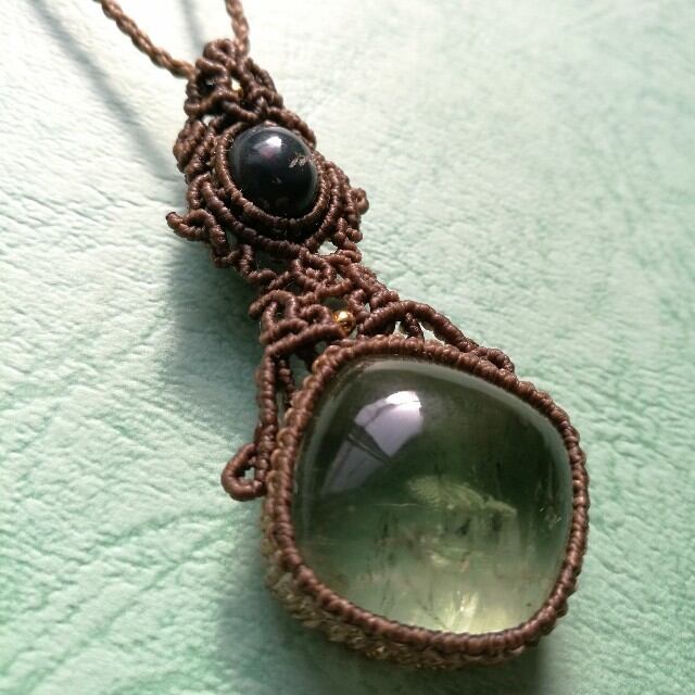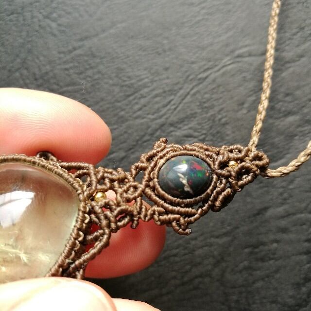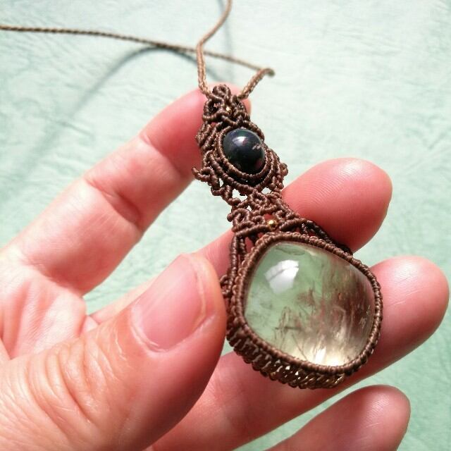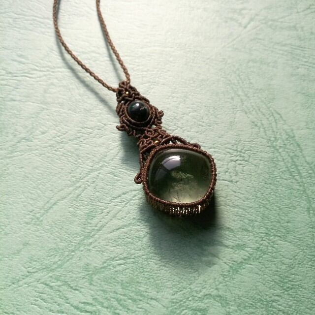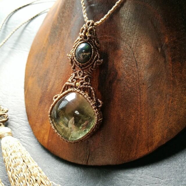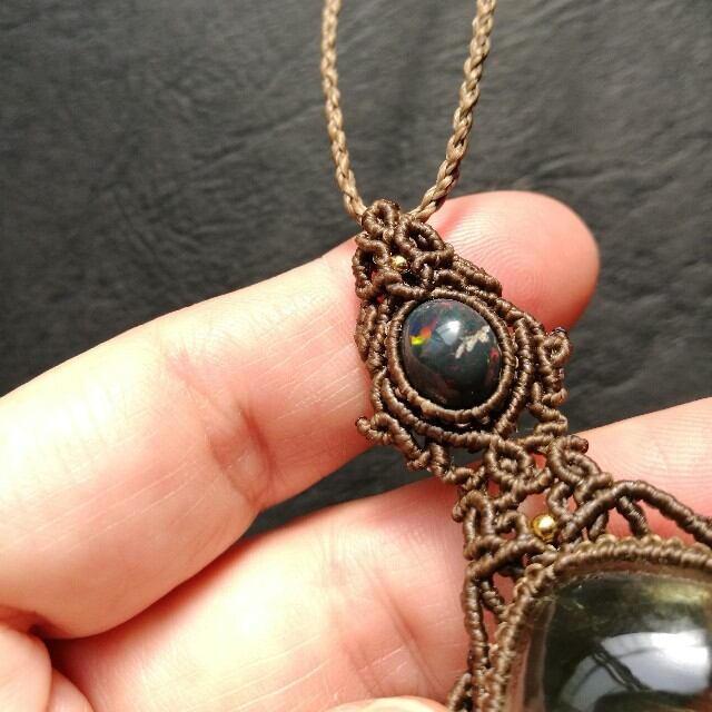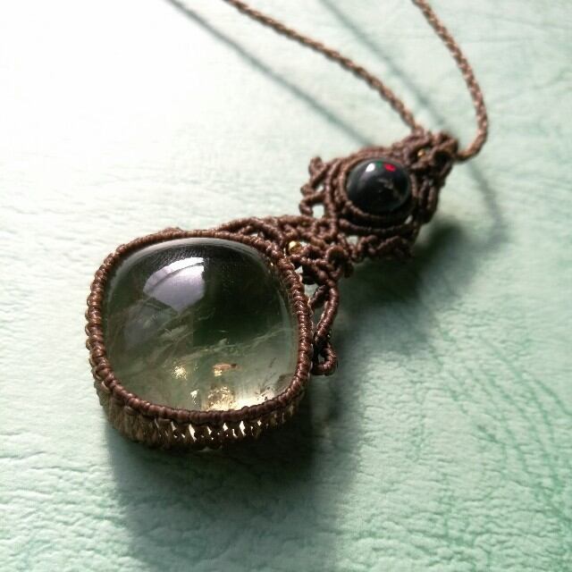 虹入りグリーンアメジスト&ブラックオパールペンダント