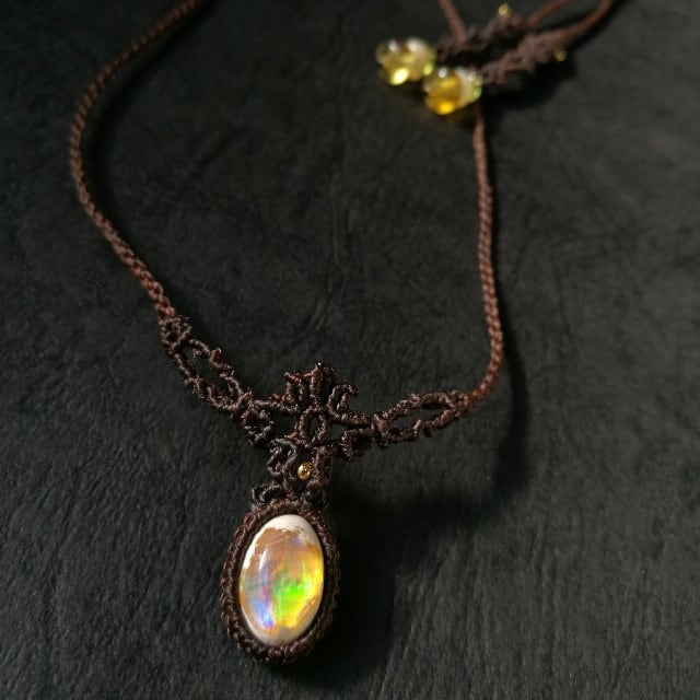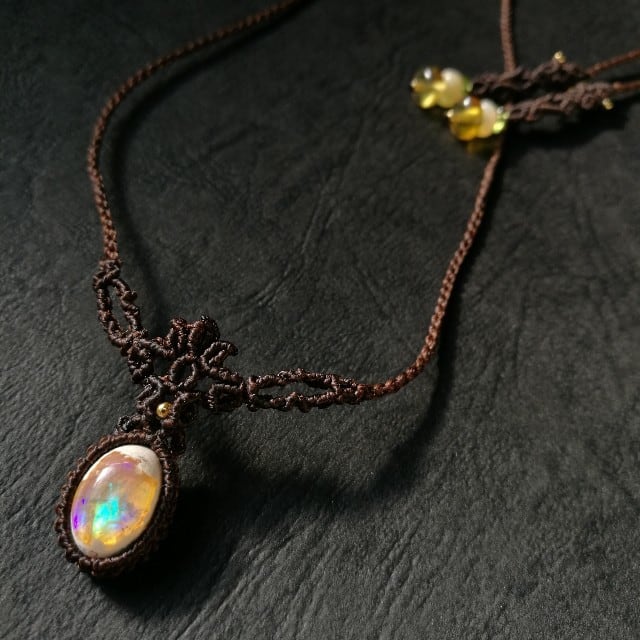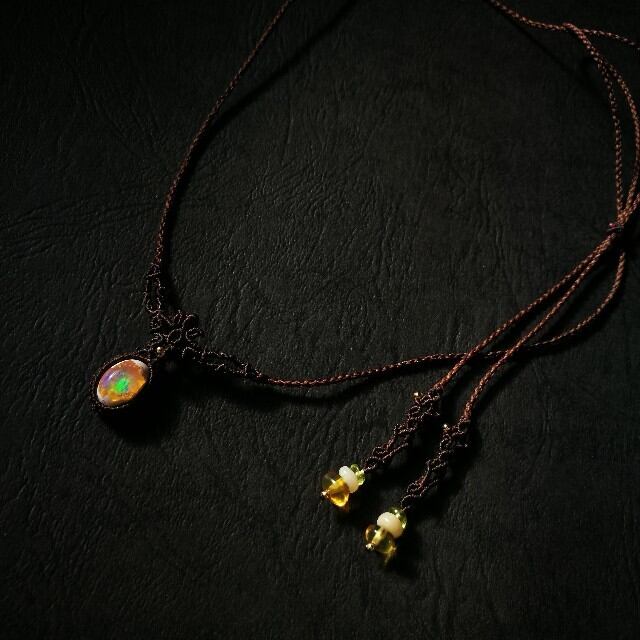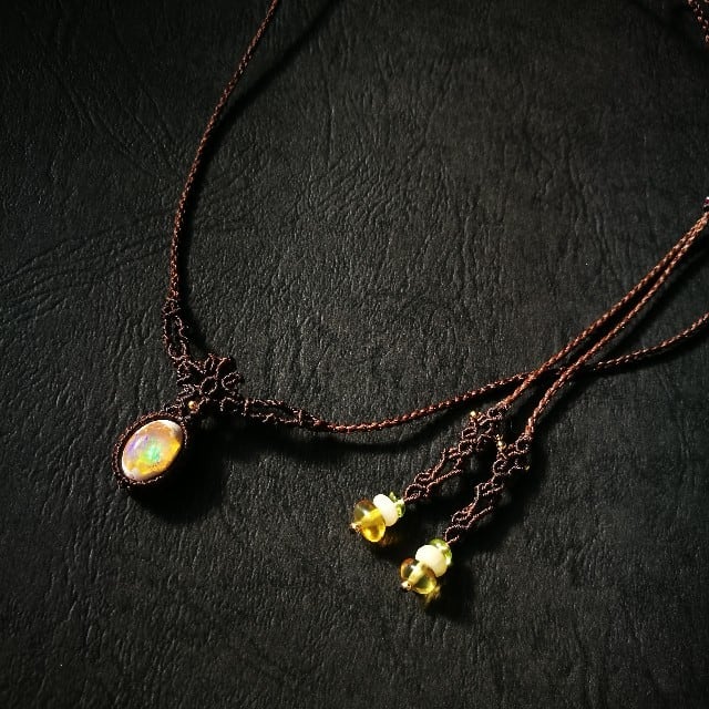 エンドにはペリドット、オパール、琥珀ビーズをあしらいました♡