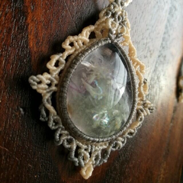 2色の0.5のワックスコードで可憐で繊細に編み上げてあります♡
