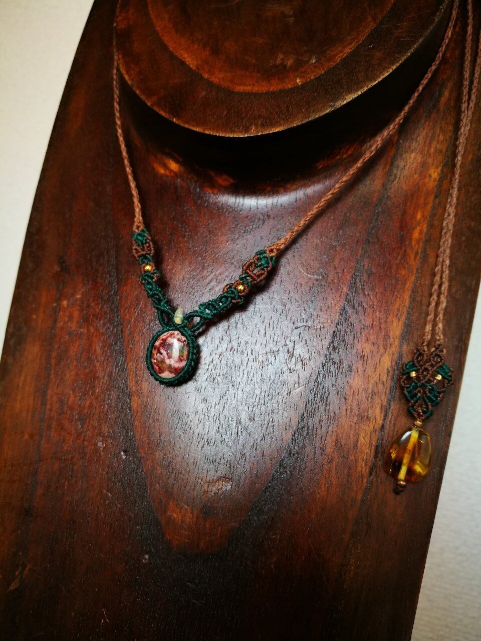 首紐エンドには琥珀を入れてみました♡