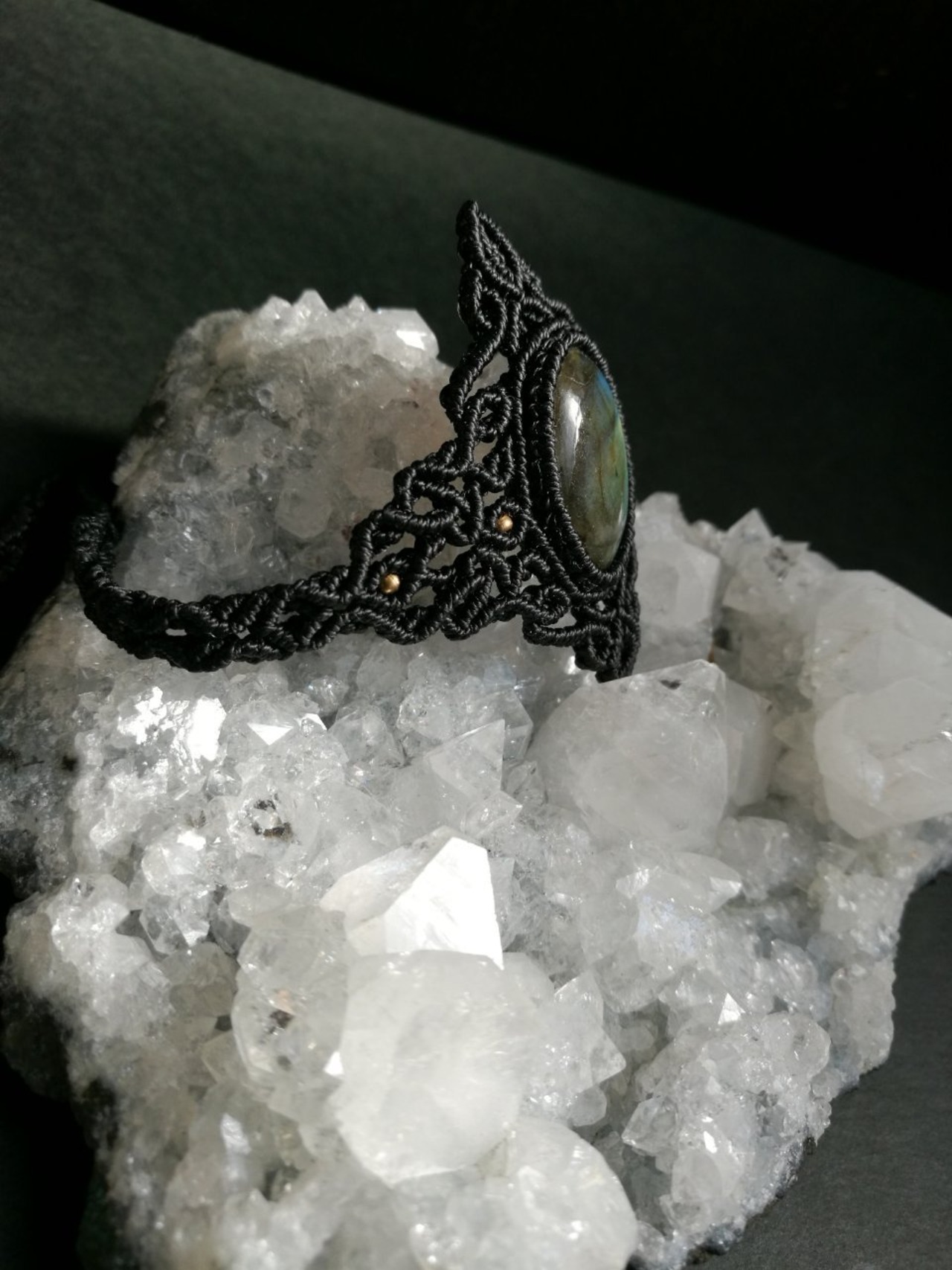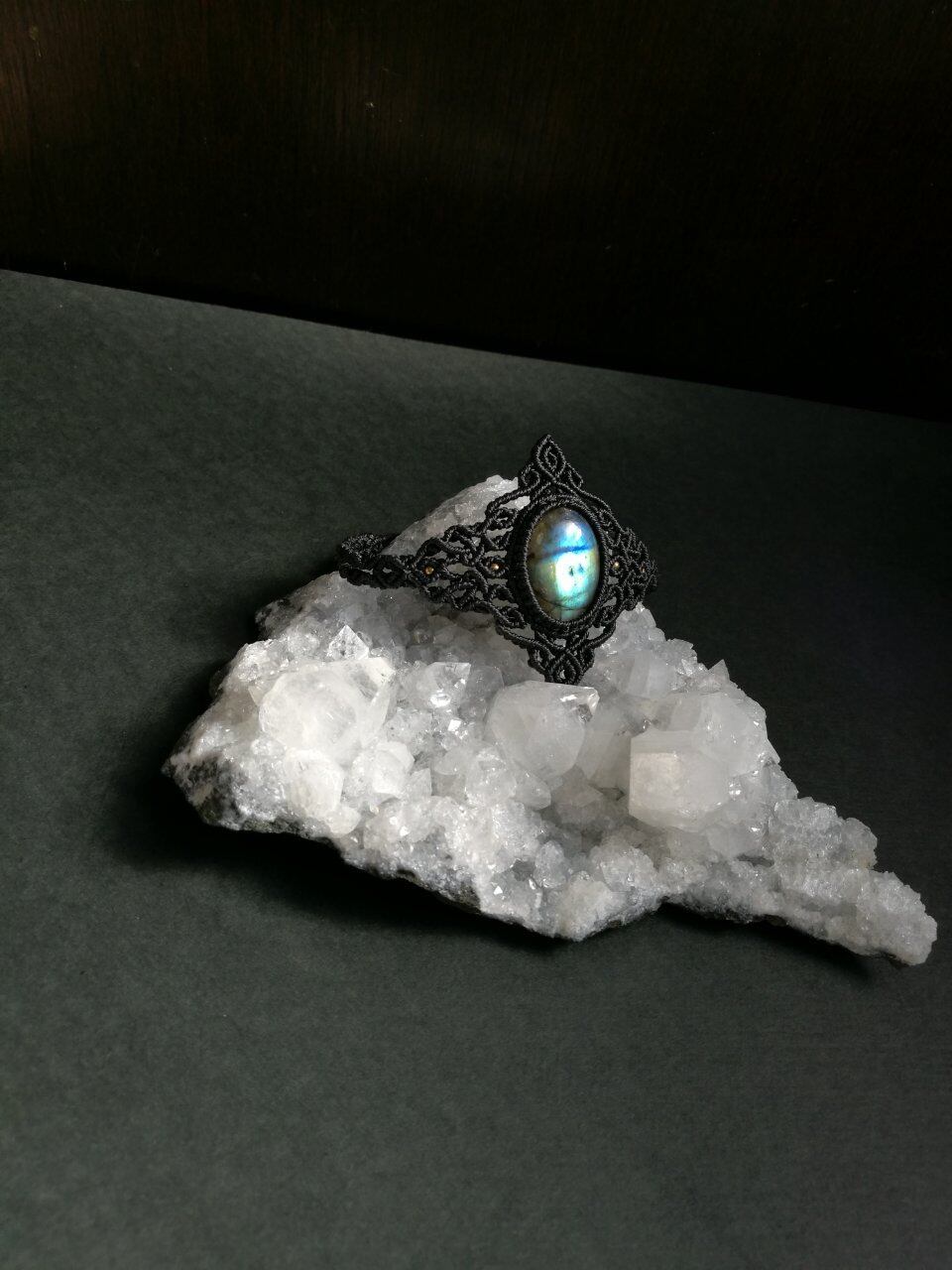 ブラックの紐を使用することでより一層ラブラドライトが輝きます♡