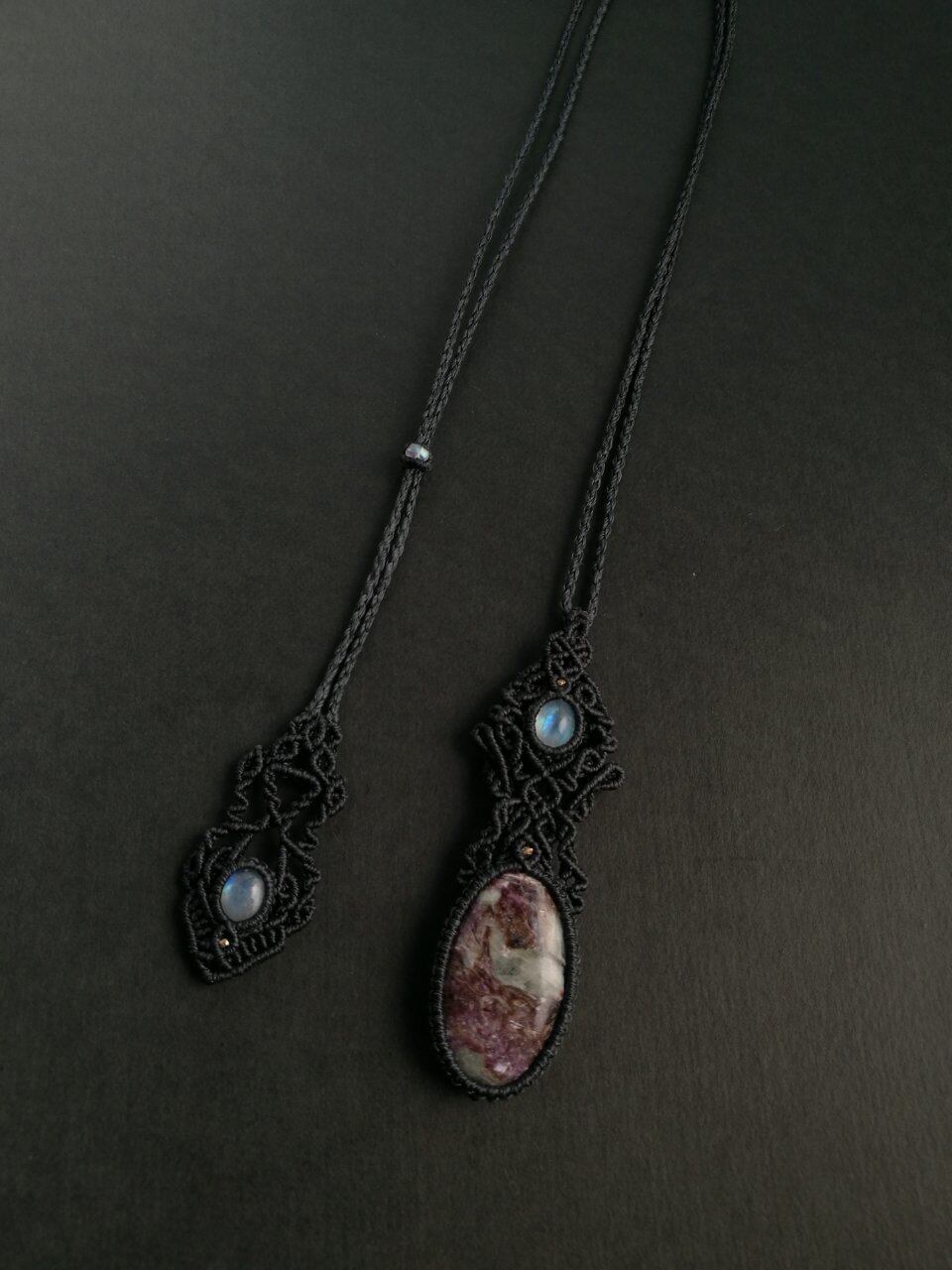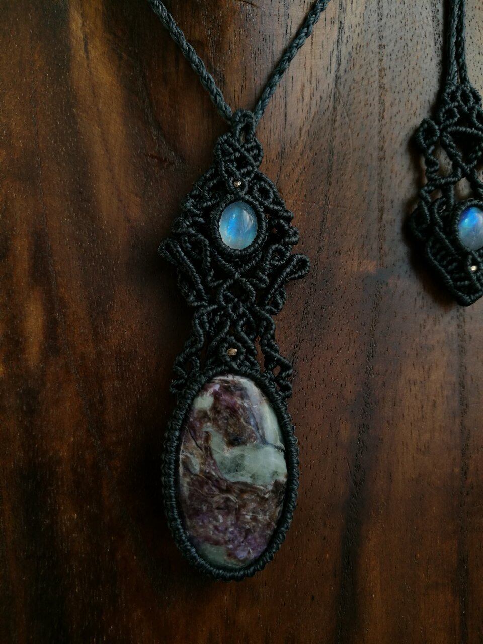 チャロアイトに合わせたのは、レインボーに煌めくホワイトラブラドライト✽