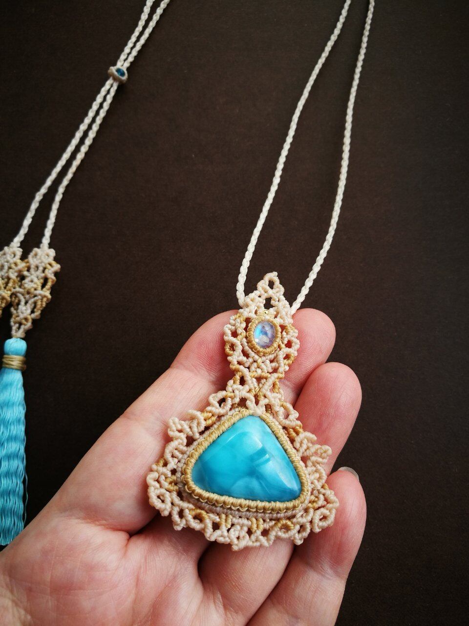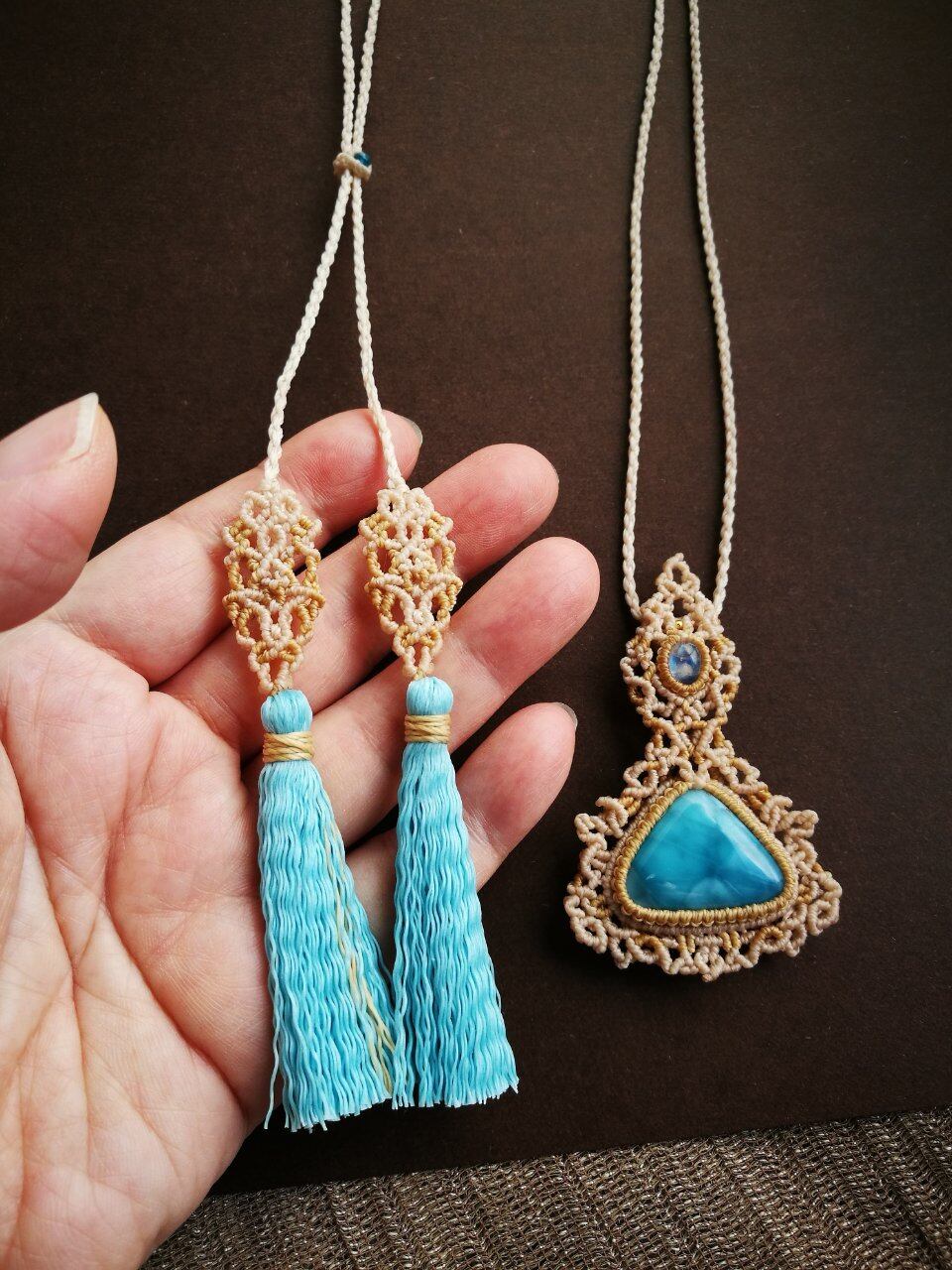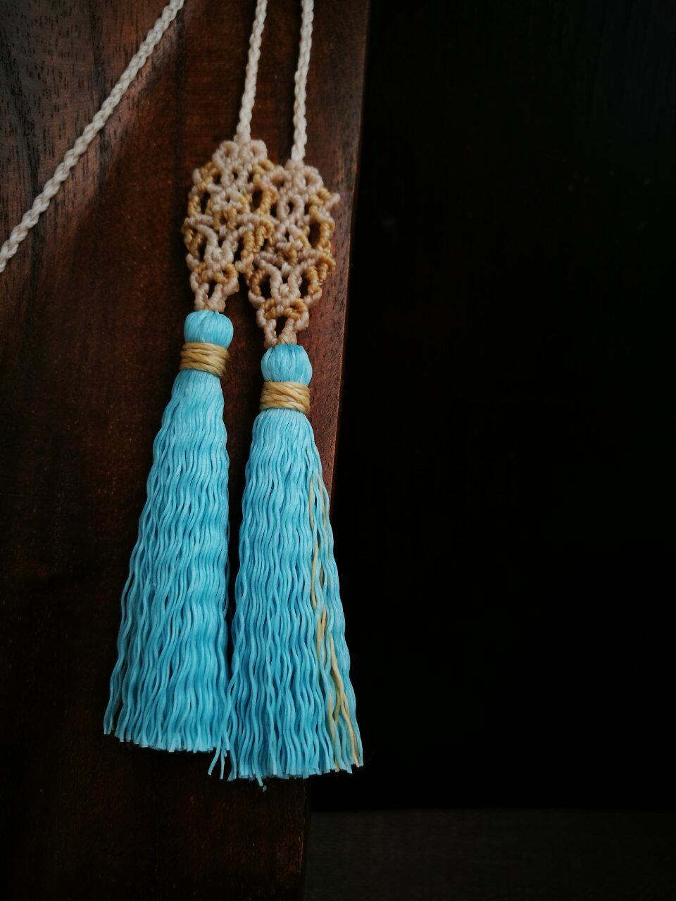 エンドにはラリマーのお色に合わせて(ラリマーの色のほうが濃い目だけど)、ブルーのタッセルをお付けしました♡